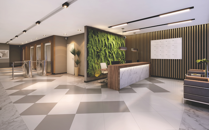 Recepção com 4 elevadores de última geração e catracas eletrônicas, para maior segurança e comodidade.